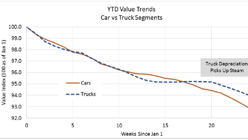 The pendulum finally swung last week, with trucks showing higher depreciation than cars for the first time this year, according to Black Book.