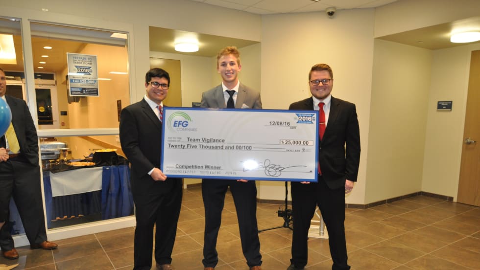 EFG Companies and Northwood University have named Team Vigilance the winner of their 2016 Innovator of the Year competition. The three-person team was awarded $25,000, and could see their winning product developed by EFG for market availability.