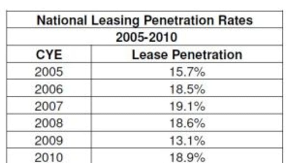 Automotive leasing represented nearly 19 percent of overall vehicle transactions last year, according to Polk. This represents a 5.8 percentage point increase over 2009 leasing penetration rates.