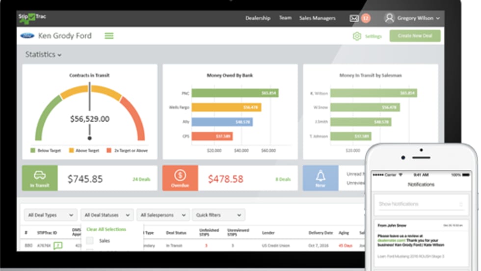 Stip Trac was designed to help dealers and their F&I offices track cash flow, collect stips, and keep an open communication line with car buyers before and after their purchase. Dealers can also set contracts-in-transit limits, track money in transit by salesperson and more.