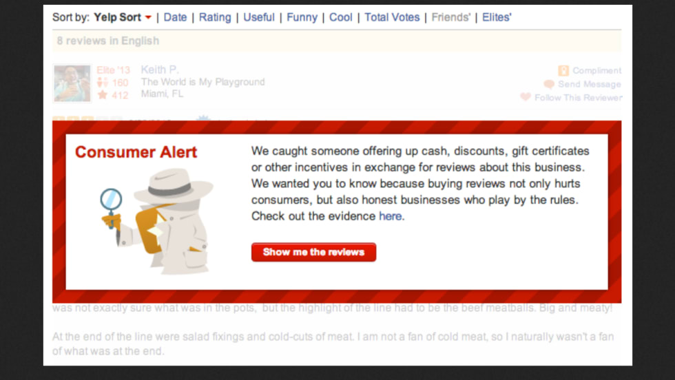 This week, Yelp issued another round of consumer alerts, or pop-up messages warning customers that a business was caught ‘red-handed’ trying to purchase fake reviews.