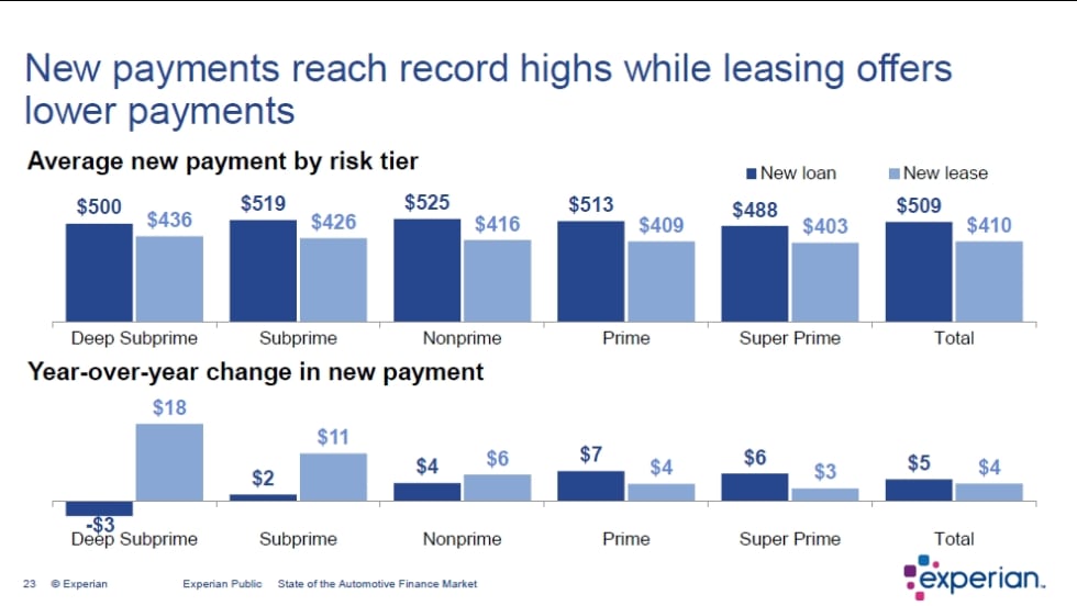 Reflecting the shift toward more creditworthy borrowers was the rise in average credit scores for both new- and used-vehicle loans. But the retreat from the high-risk tiers also comes during a quarter in which the average new-vehicle finance amount and monthly payment reached record highs.