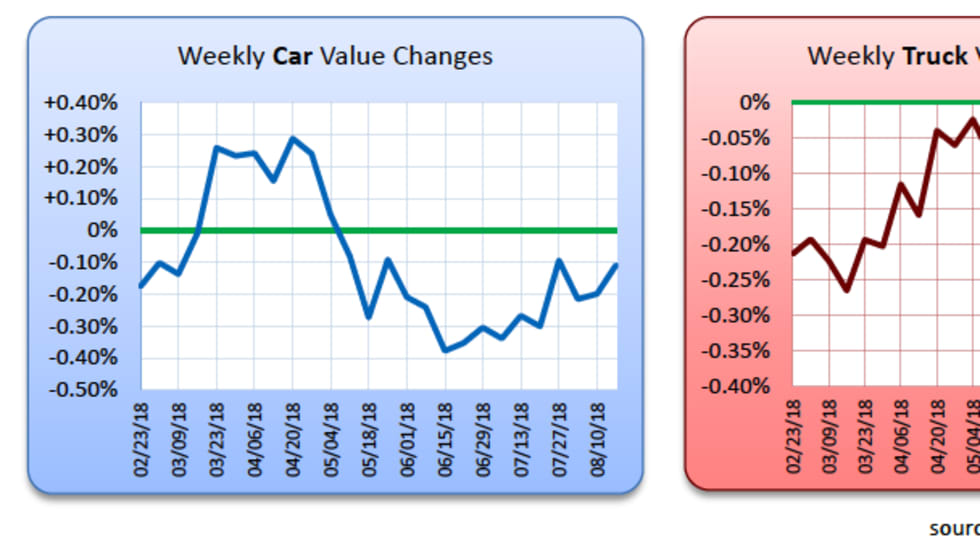 Wholesale values continued to see little change last week, although demand for sporty cars appears to be dwindling as the average value of that segment has begun to drop.